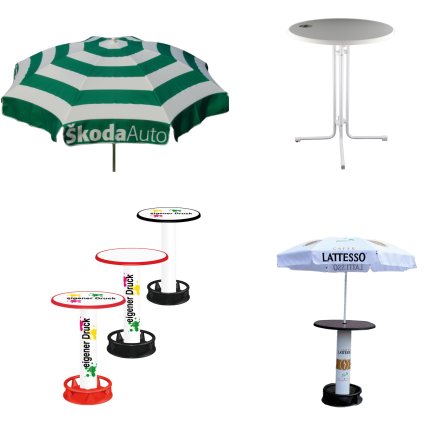 Passende Stehtische - in verschiedenen Ausführungen - mit und ohne Druck erhalten Sie selbstverständlich auch bei uns.